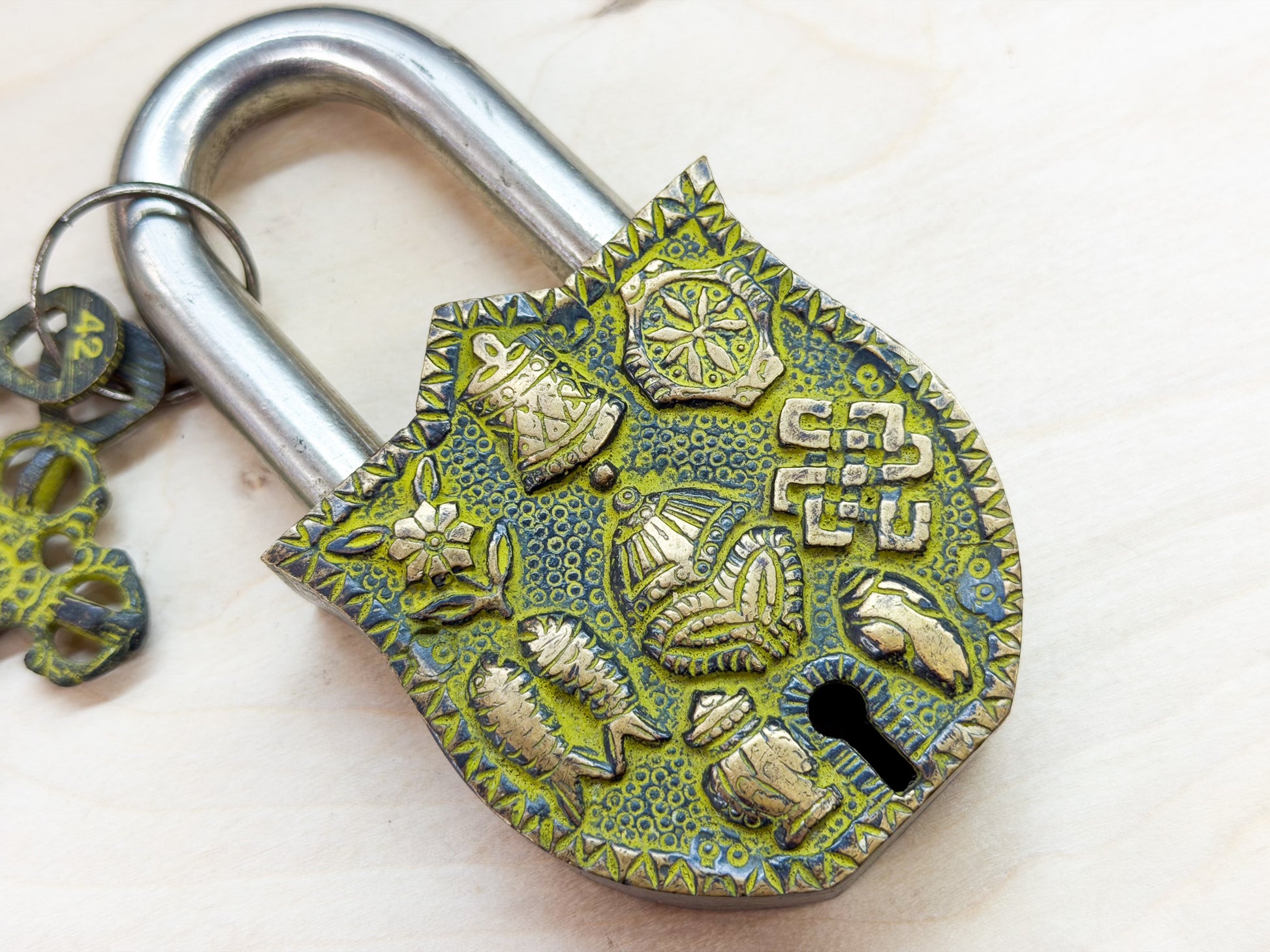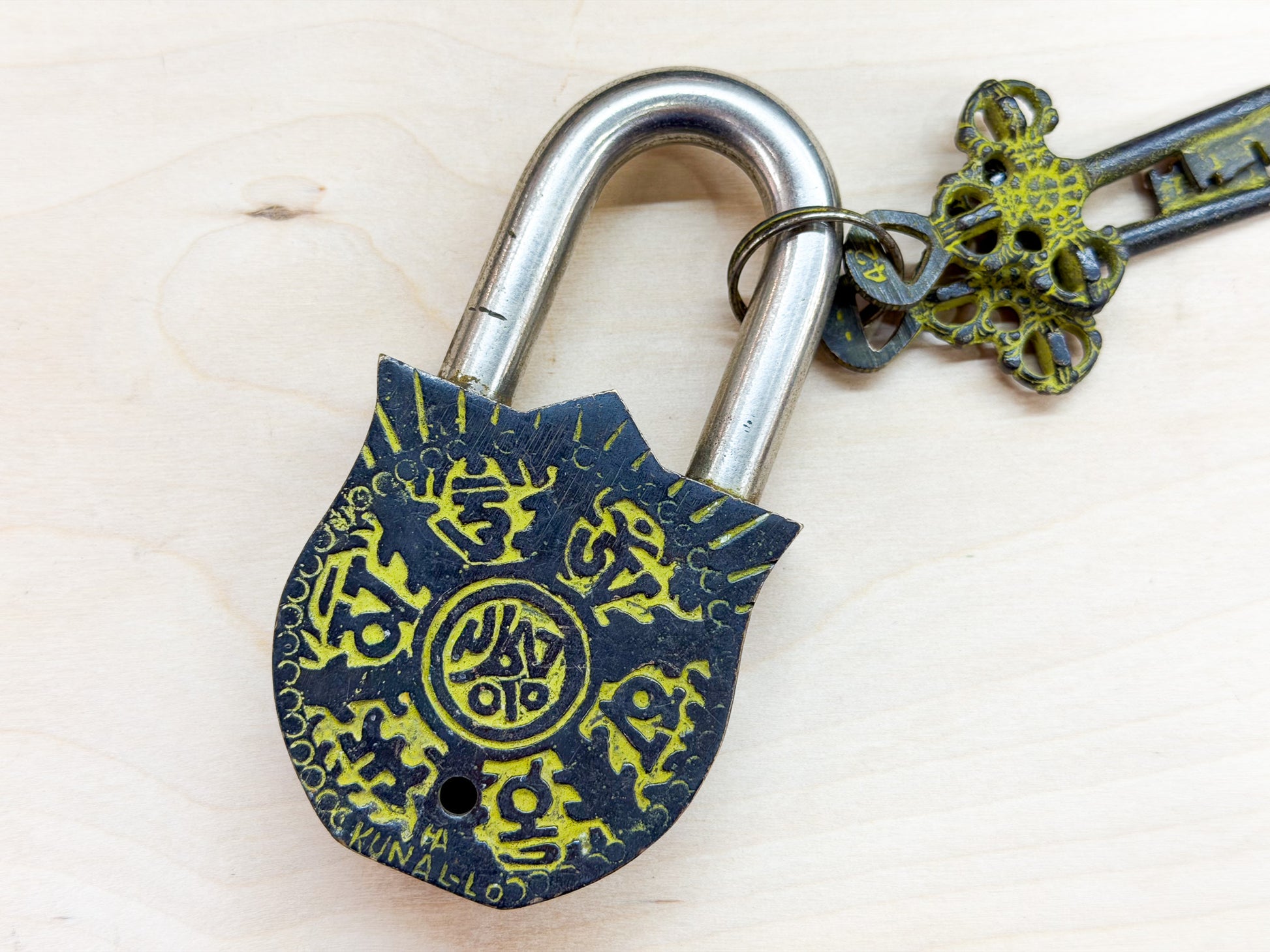 Handmade in India, each lock showcases intricate detailing of the Ashtamangala — the Eight Auspicious Symbols revered in Tibetan Buddhism, representing blessings of peace, protection, and prosperity.