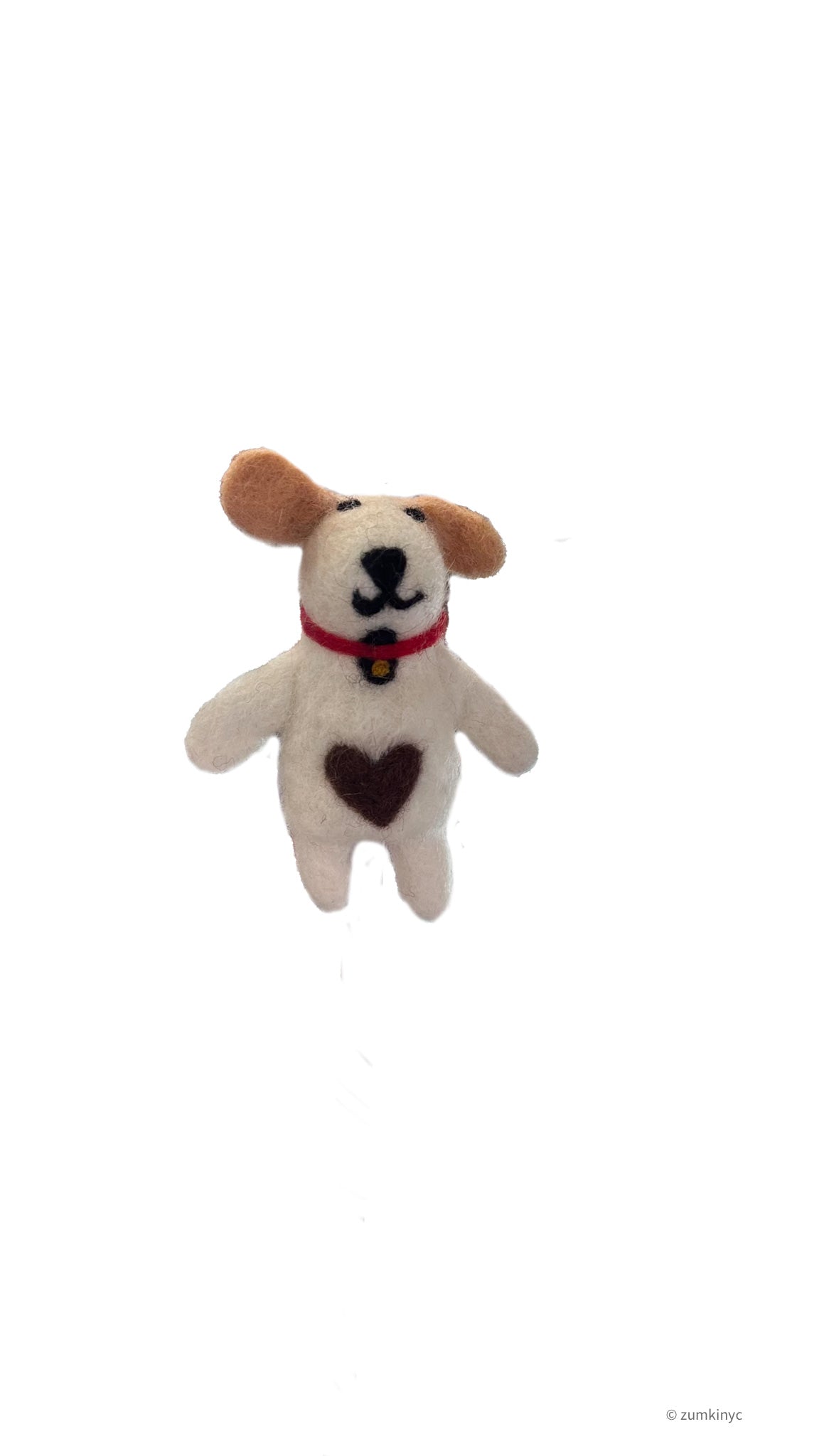 Brown Dog with Heart and Bell Wool Felt Finger Puppet