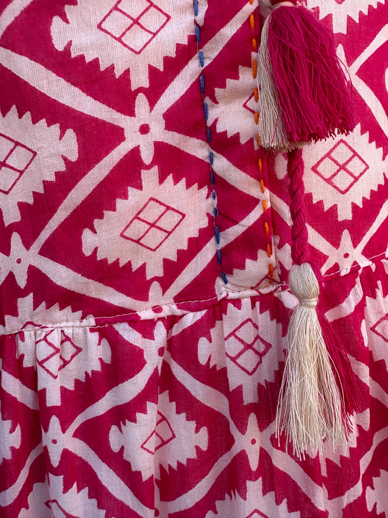 Handcrafted Cotton Midi Dress – Block Print Boho Resort Wear