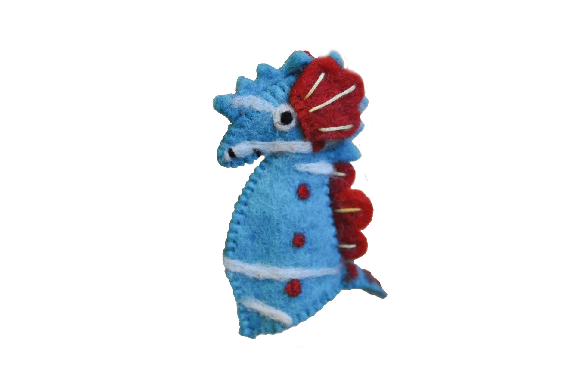 Dive into undersea adventures with this whimsical seahorse! Handmade in Nepal using 100% sheep wool, each puppet is soft, safe, and full of charm.